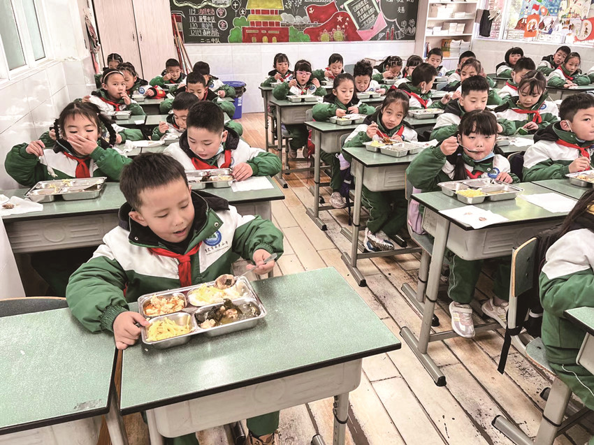 康定市回民小學的學生正在教室里吃午餐。 甘孜日報資料庫圖