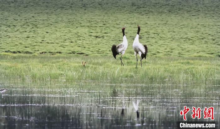 圖為祁連山國(guó)家公園青海片區(qū)內(nèi)的黑頸鶴。祁連山國(guó)家公園青海省管理局供圖