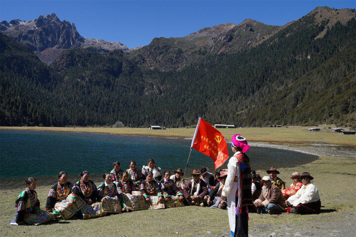 香格里拉市小中甸鎮(zhèn)和平村拉扎村民小組36歲的村民吹丹黨齡11年,他每年都參加在牧區(qū)上的黨課,這場黨課經(jīng)常在雪山牧場、高山峽谷、海拔4000多米的蟲草山等地開展,以播放視頻、理論宣講、開座談會等形式,用群眾聽得懂的民族語言宣講黨的民族宗教政策、民族團結進步知識、鑄牢中華民族共同體意識等。他感慨地說:“村里人都是藏族,特別是老一輩,沒什么文化,大多聽不懂漢語。我也只有小學文化,平時看電視很多語句也聽不太明白。流動黨校的老師用通俗易懂的民族語言,親切地宣傳黨的政策法規(guī),大家不但聽得懂,而且也喜歡聽。”