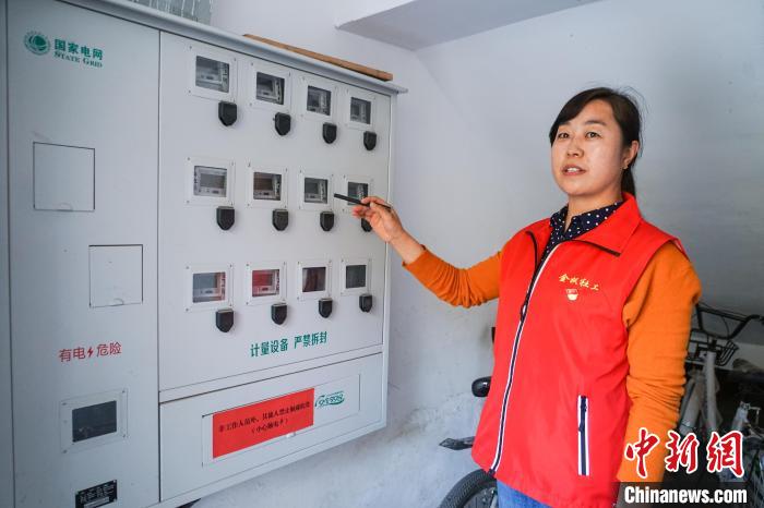 圖為園林社區(qū)黨支部書記、居委會(huì)主任喬鴻霞介紹電表分戶改造情況。馬銘言攝
