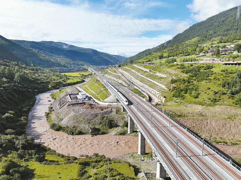 試驗(yàn)動(dòng)車行駛在川青鐵路上。中國(guó)鐵路成都局集團(tuán)公司供圖