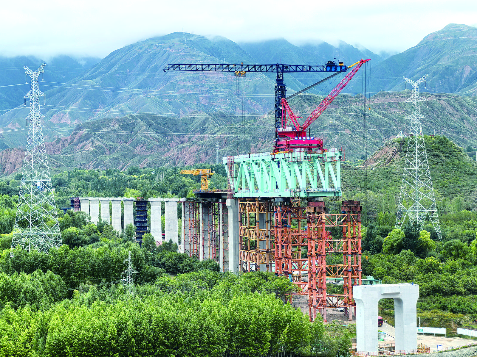 記者了解到,截至目前,尖扎黃河特大橋主橋下構(gòu)全部施工已完成,鋼桁拱設(shè)計的50個節(jié)間,目前已架設(shè)完成17個節(jié)間,主橋鋼桁拱預(yù)計2025年7月合龍。
