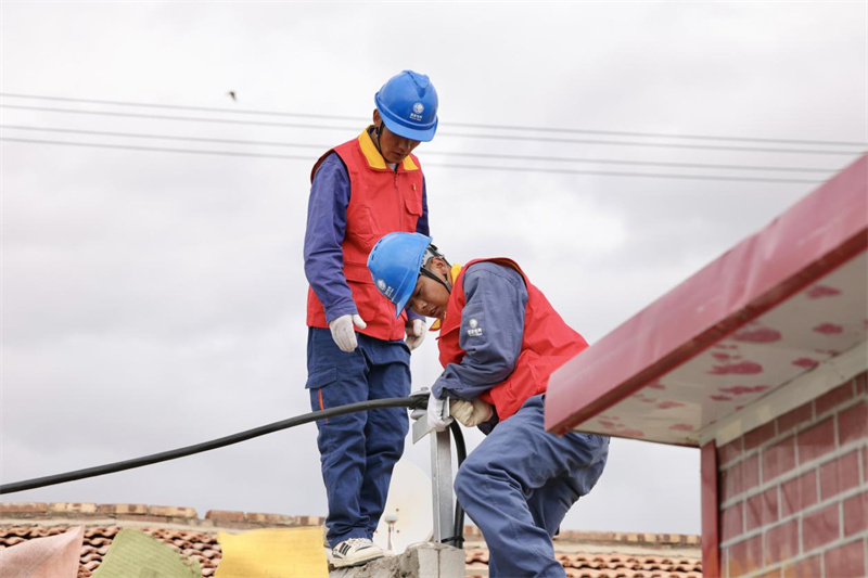 9月28日,在蘇里35千伏輸變電工程投入運行前,國家電網(wǎng)天峻縣供電公司員工在牧民家檢查用電線路。李逸飛 攝