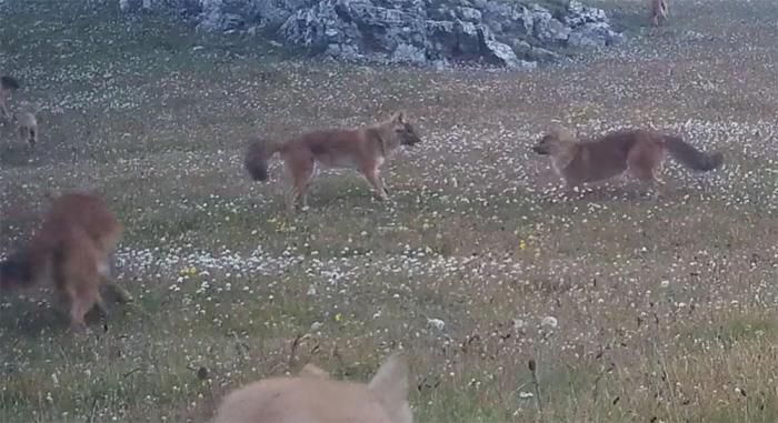 圖為祁連山管護(hù)中心2024年監(jiān)測(cè)到的豺種群出沒視頻截圖。祁連山管護(hù)中心野生動(dòng)植物管理科供圖