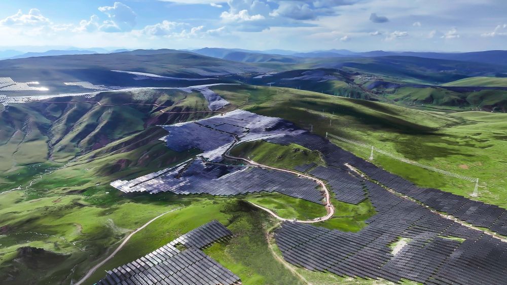 50公里外,海拔4600米的扎拉托桑山上,超過200萬片光伏板覆蓋群山、隨勢起伏。這是全球最大、海拔最高的水光互補電站——柯拉光伏電站,其規(guī)劃裝機容量達3吉瓦,生產的電能通過500千伏輸電線路接入兩河口水電站。