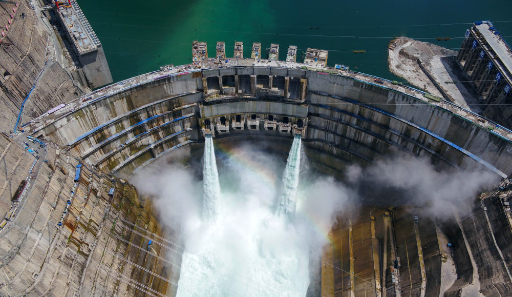 這是金沙江下游白鶴灘水電站(2021年6月10日攝,無人機照片)。新華社記者 胥冰潔 攝