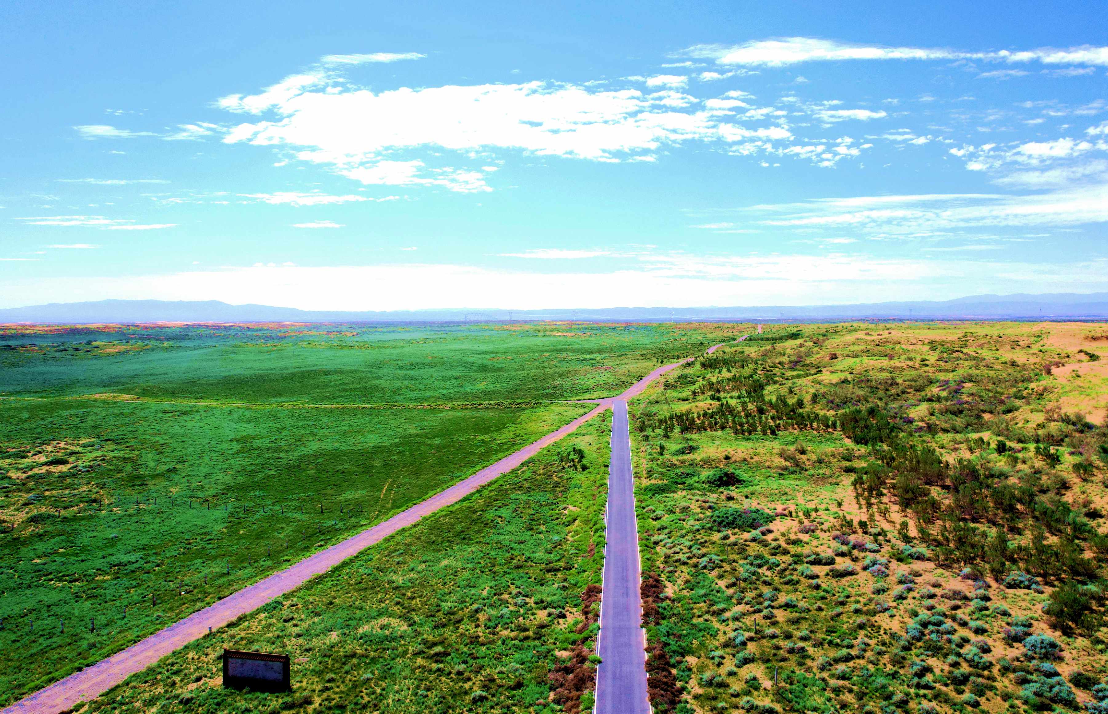 甘蒙省界治沙道路與緯七治沙道路交叉口