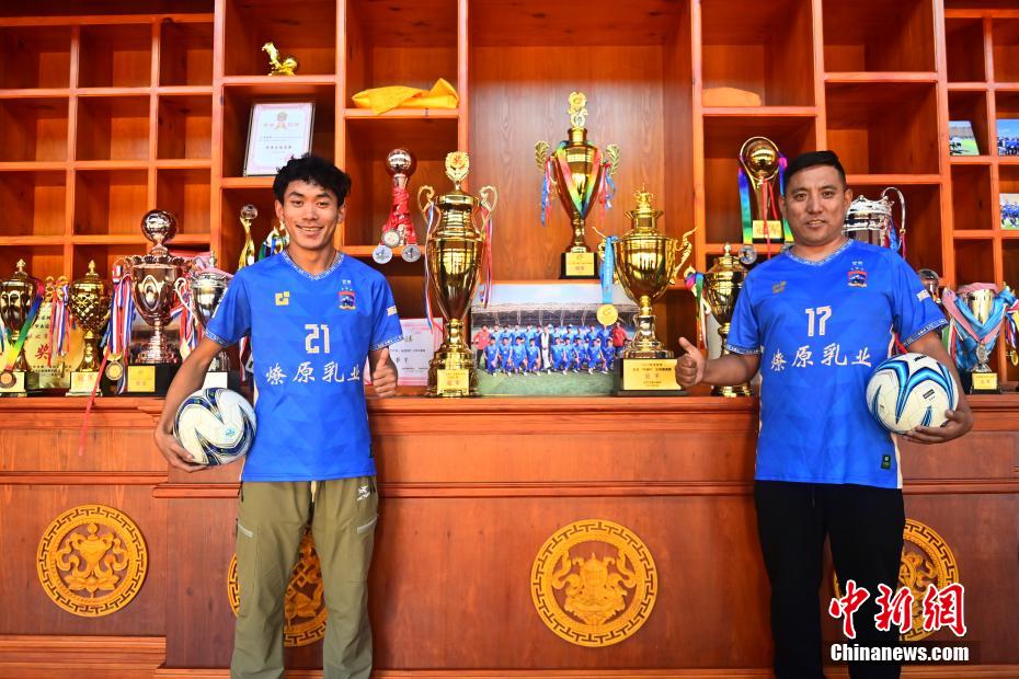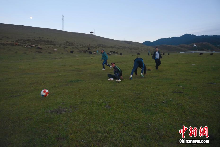 10月15日,在甘肅省甘南藏族自治州合作市一牧場內(nèi),甘南九二聯(lián)隊足球隊員進行訓練。該足球隊已成立32年,由牧民、務(wù)工者、歌舞演員、個體戶、老師、學生等組成,如今已歷經(jīng)三代球員的成長。