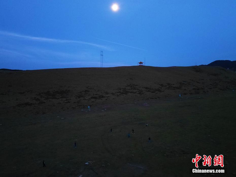 10月15日晚,在甘肅省甘南藏族自治州合作市一牧場內(nèi),甘南九二聯(lián)隊足球隊員在月下訓練。該隊隊員因為都在不同地方工作,所以長期自我尋找草場、牧區(qū)等近場地訓練,高原草場是他們訓練的一大優(yōu)勢。