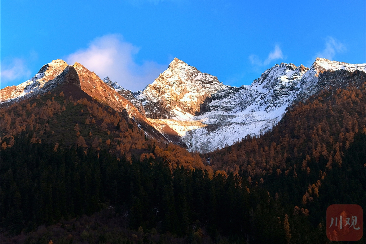 深秋時(shí)節(jié),四川省阿壩州小金縣瑪嘉溝迎來(lái)一年中最美季節(jié),雪山、冰川、海子、針葉林、原始森林等在藍(lán)天白云下變得色彩斑斕,層林盡染,已是一幅半山彩林半山雪的壯觀景象。 [詳細(xì)]