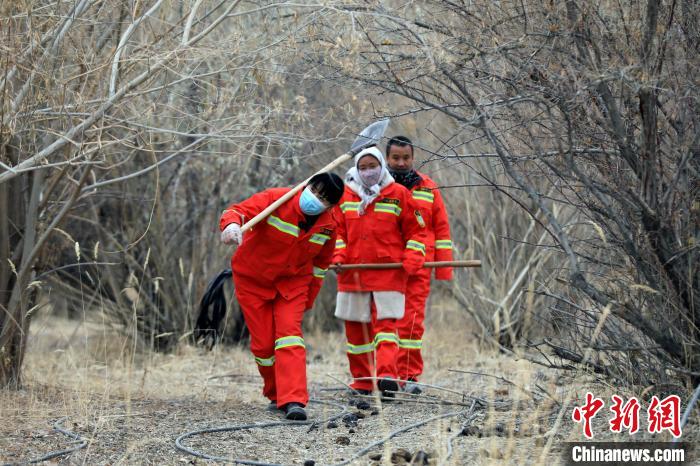圖為12月9日,青海海西格爾木,賈金蘭(左一)在千畝林中心管護站巡護。中新社記者 王磊 攝