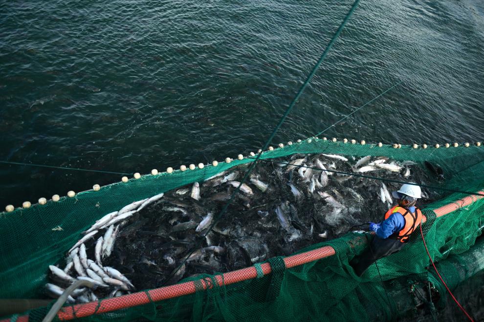 由于冷水魚對水質(zhì)要求高,公司還自主研發(fā)糞便收集器、水下清污器等環(huán)保設備?!氨3炙|(zhì)就保證了魚肉品質(zhì)?!饼堁笾r技術(shù)部部長馬小軍說。