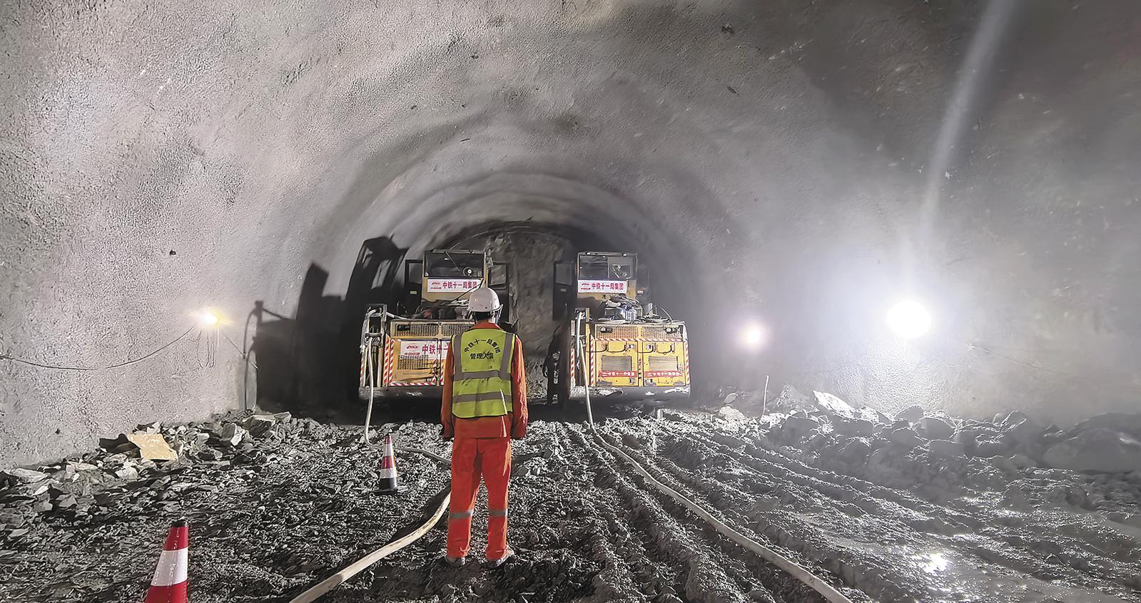 管理人員指揮三臂鑿巖臺車作業(yè)。王偉才 攝