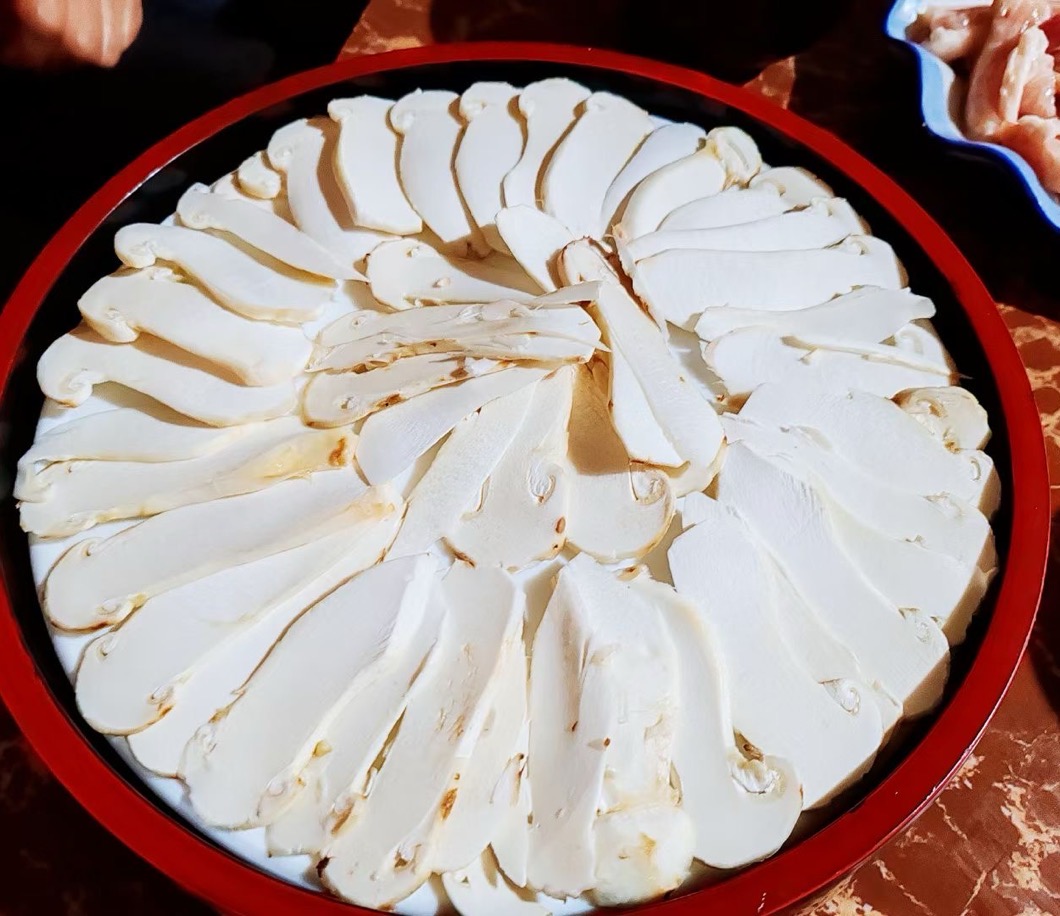 在四季的輪換中,迪慶人待客的餐桌上,菜色會根據(jù)時令和大自然的饋贈變換。春天,當(dāng)?shù)蠎c的高海拔地區(qū)還在皚皚白雪中沉睡時,金沙江畔的羊肚菌已經(jīng)悄然出土,宰一只農(nóng)家土雞,搭配上新鮮的羊肚菌,味道鮮美、湯汁濃郁。這個季節(jié),人們過年時備下的藏香豬琵琶肉、臘排骨、牦牛肉干還可以與羊肚菌一起碰撞出驚艷味蕾的美食。