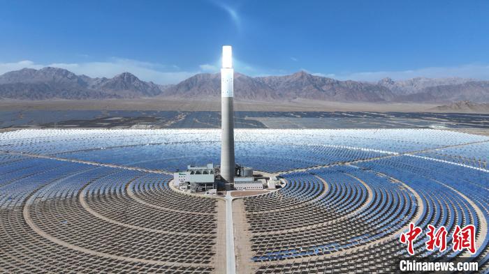 電站建在蒼茫戈壁深處,以同心圓陣列排開的27135面“超級(jí)鏡子”圍繞著中央200余米高的吸熱塔,自動(dòng)跟蹤收集太陽(yáng)光能,精準(zhǔn)反射、投遞至塔頂吸熱器,配置的7小時(shí)熔鹽儲(chǔ)能系統(tǒng)通過(guò)加熱熔鹽儲(chǔ)存熱能,再根據(jù)電網(wǎng)調(diào)度指令夜間釋放熱能,最終帶動(dòng)汽輪機(jī)發(fā)電。