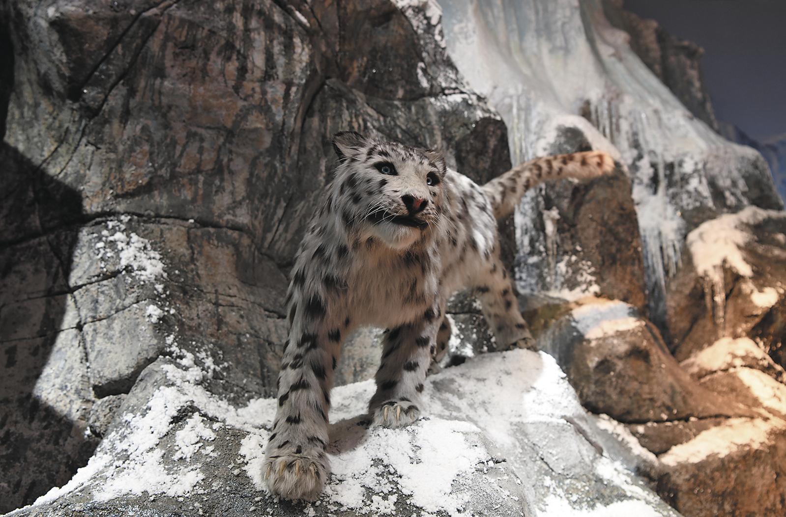 科普館一角展示的雪豹標本。