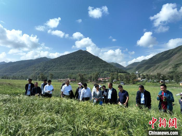2023年8月,農(nóng)業(yè)專家們調(diào)研尕旦木草公司的青稞種植基地。(資料圖)受訪者供圖