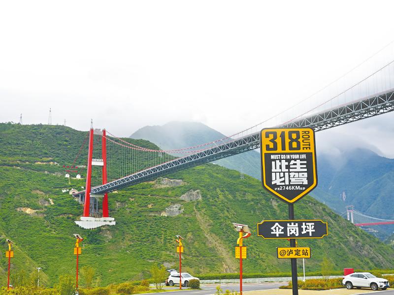 川藏公路大渡河懸索橋與興康特大橋,是自駕國道318線的兩個重要打卡點(diǎn),前者展現(xiàn)川藏公路最初的模樣,后者彰顯中國交通基礎(chǔ)設(shè)施建設(shè)的巨大成就。建設(shè)在興康特大橋旁的傘崗坪驛站,不斷將自駕游客“剎一腳”的流量轉(zhuǎn)變?yōu)椤傲袅俊薄?/p>