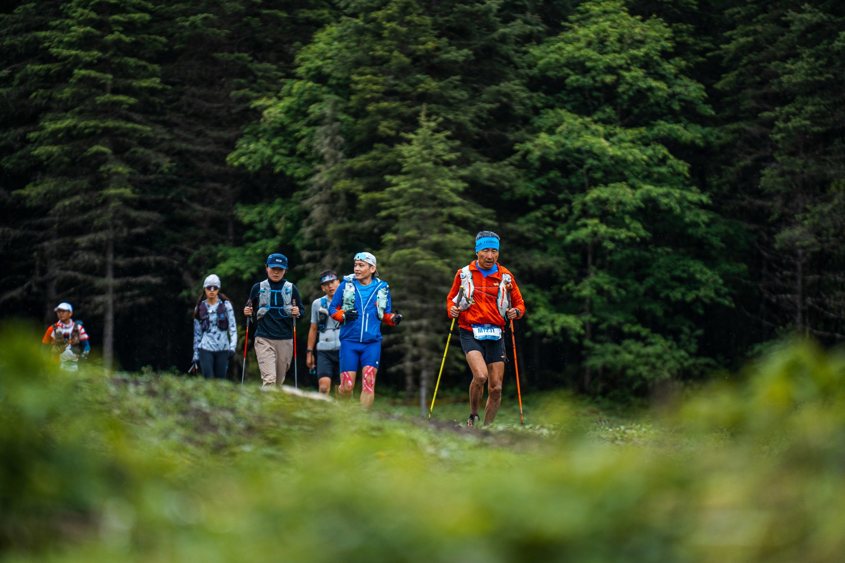 九寨溝環(huán)神仙池超級(jí)越野賽中,參賽選手穿越叢林。九寨溝縣委宣傳部供圖