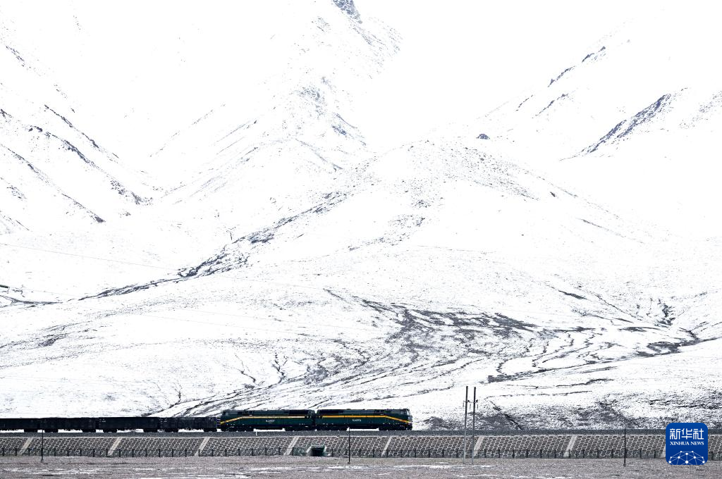 2024年5月27日,列車行駛在昆侖山下的青藏鐵路上。新華社記者 張龍 攝
