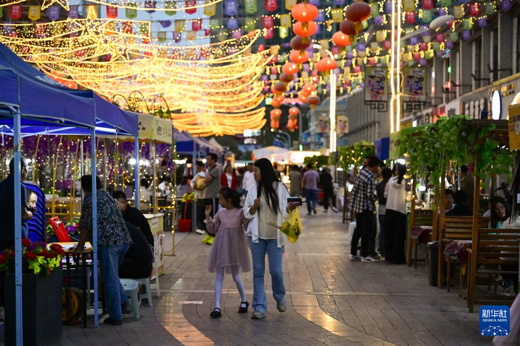 7月2日,市民在青海格爾木的“旱碼頭”夜市逛街。新華社記者 張龍 攝
