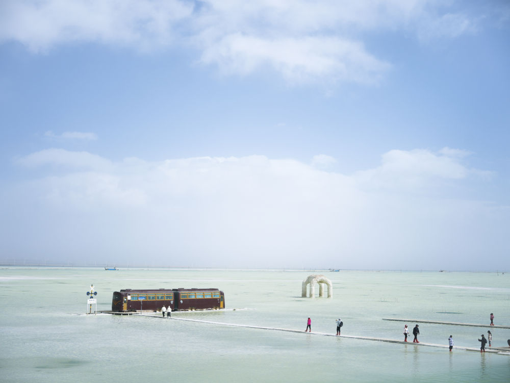 當陽光掠過日月山,將昆侖山巔的積雪照得金光燦燦,總面積超過5800平方公里的察爾汗鹽湖,在陽光下透出晶瑩的色彩,青藏鐵路上拉運鉀肥的列車隆隆駛過,帶出一段“中國鹽湖城”的故事……