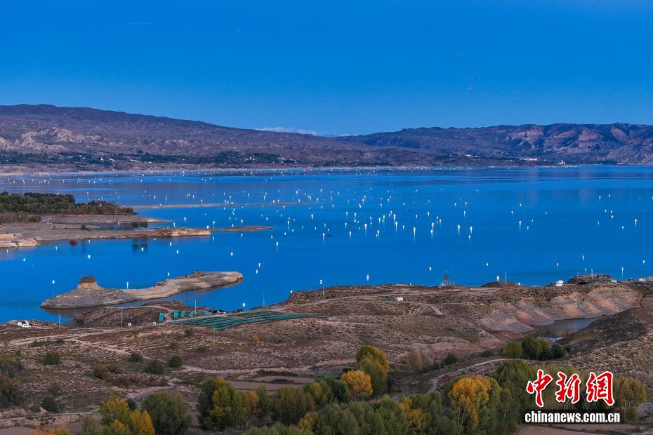 10月13日晚,位于青海省海南藏族自治州共和縣的龍羊峽庫區(qū)九曲里湖面,盞盞漁燈點亮湖面,與星空相映成景。龍羊峽庫區(qū)水域面積383平方公里,擁有黃河上游第一座大型梯級電站——龍羊峽水電站。