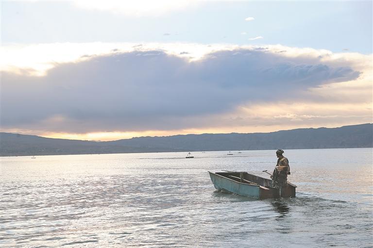 時入寒露,秋意蕭瑟。10月14日,當晚霞準備喚醒矗立在海南藏族自治州龍羊峽鎮(zhèn)漁歌唱晚時,“小漁村”里走出上百漁民,開始忙碌起來,收拾漁具,發(fā)動船只,駛向龍羊湖中一個個“燈塔”。