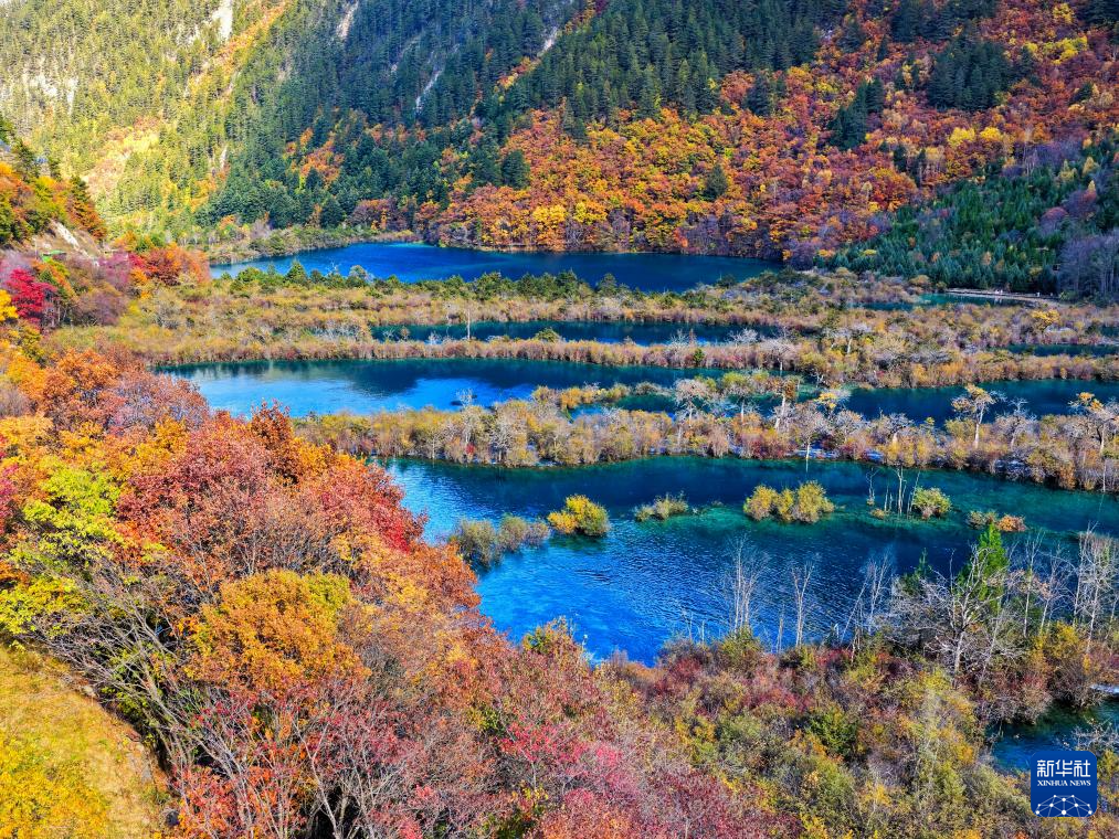 這是2025年11月10日拍攝的九寨溝景區(qū)樹(shù)正群海一景(無(wú)人機(jī)照片)。新華社發(fā)(梁楓攝)