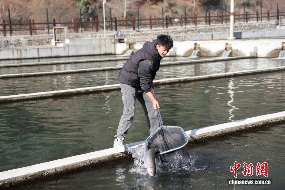 12月26日,位于四川省阿壩州理縣薛城鎮(zhèn)甲米村的高原特色冷水魚養(yǎng)殖基地內(nèi),工作人員查看鱒魚生長情況。該基地處于海拔超2000米的孟屯河畔,水源來自高海拔地區(qū)的雪山融水,年均水溫9-10℃,目前養(yǎng)殖有鱒魚、黃河魚、雅魚等10萬余尾?;貙?yōu)良生態(tài)資源與現(xiàn)代養(yǎng)殖技術(shù)結(jié)合,通過“魚經(jīng)濟(jì)”發(fā)展,豐富業(yè)態(tài)、增加就業(yè)、農(nóng)旅融合壯大了該村集體經(jīng)濟(jì),同時拓寬了村民增收致富渠道。
