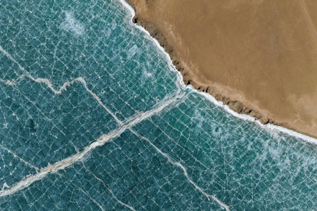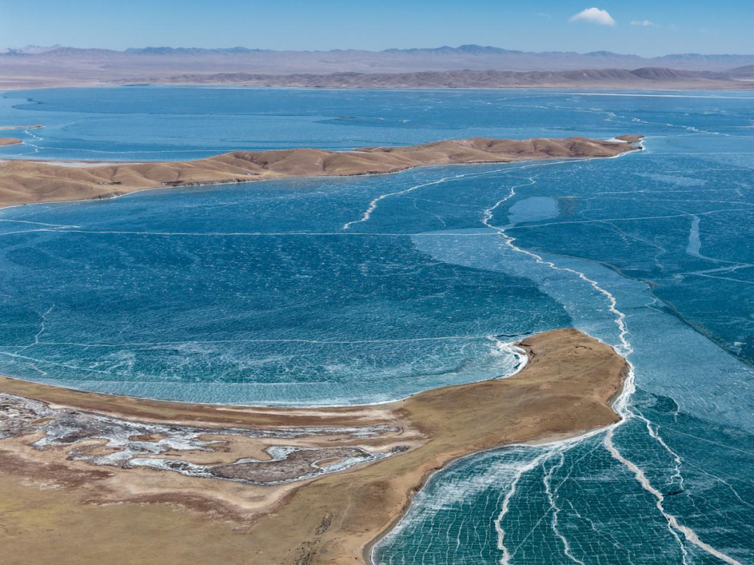 這是2026年3月10日在青海省果洛藏族自治州瑪多縣境內(nèi)拍攝的扎陵湖一角(無人機照片)。新華社記者 張龍 攝