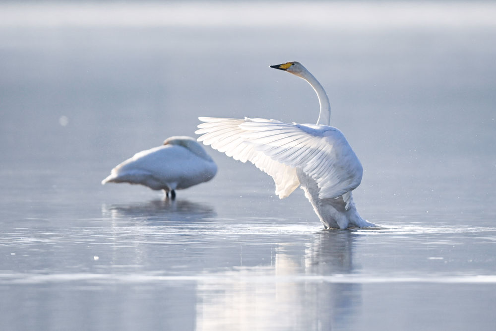 這是在青海省海東市化隆回族自治縣境內(nèi)的黃河邊拍攝的天鵝。新華社記者 齊芷玥 攝