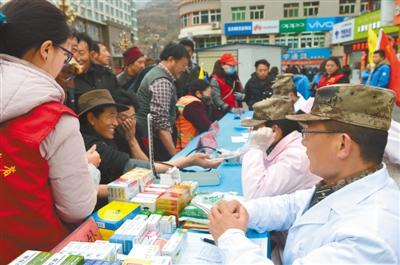 4月初,解放軍第75醫(yī)院官兵組織醫(yī)療隊進(jìn)行愛民服務(wù)活動,為駐地群眾提供醫(yī)療咨詢服務(wù)、免費檢查身體、贈送藥品。 圖為愛民服務(wù)活動現(xiàn)場。 陳志強(qiáng) 攝