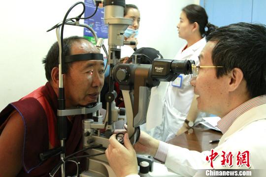 圖為2018年9月,北京同仁醫(yī)院醫(yī)生在西藏藏醫(yī)院為患者檢查眼疾。資料圖 趙朗 攝
