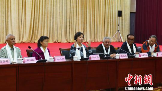 原十八軍高級將領(lǐng)張國華中將之女張小康、譚冠三中將之子譚戎生、陰法唐中將之女陰建白及原西藏自治區(qū)黨委書記洛桑慈誠之子洛桑云登、西藏軍區(qū)原副政委金紹山之子金遜、原十八軍52師154團(tuán)政委楊軍之子楊齊康、原十八軍54師文工隊(duì)指導(dǎo)員張均之女張琪和在藏的原十八軍老戰(zhàn)士陳明英等先后在座談會、報告會上發(fā)言,講述進(jìn)藏往事。