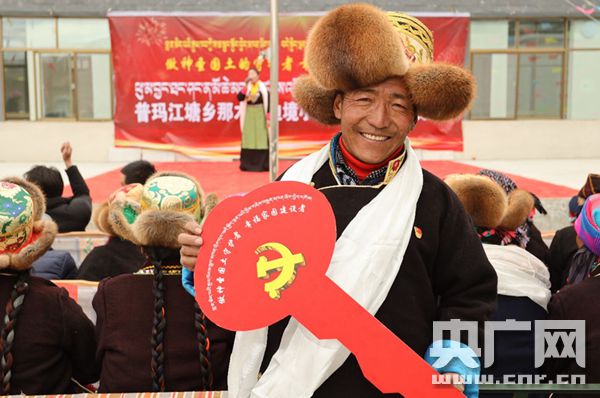 群眾領到邊境小康村新居的“金鑰匙”(央廣網(wǎng)發(fā) 浪卡子縣縣委宣傳部供圖)