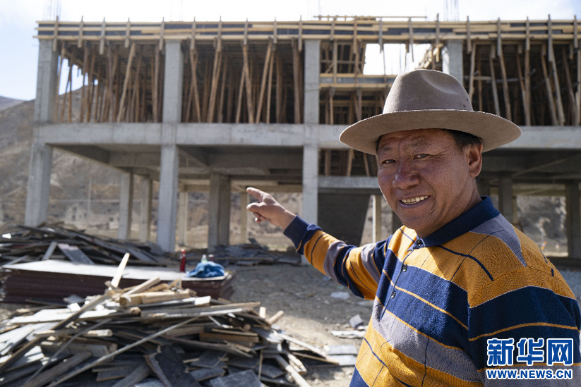“牛頭旅館”老板多吉在新蓋的旅館監(jiān)工(5月17日攝)。新華社記者 普布扎西 攝