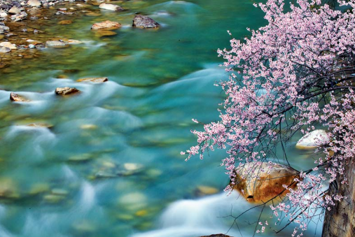 察隅河谷綻放的花與溪流(4月7日拍攝)。 本報(bào)記者黃豁攝