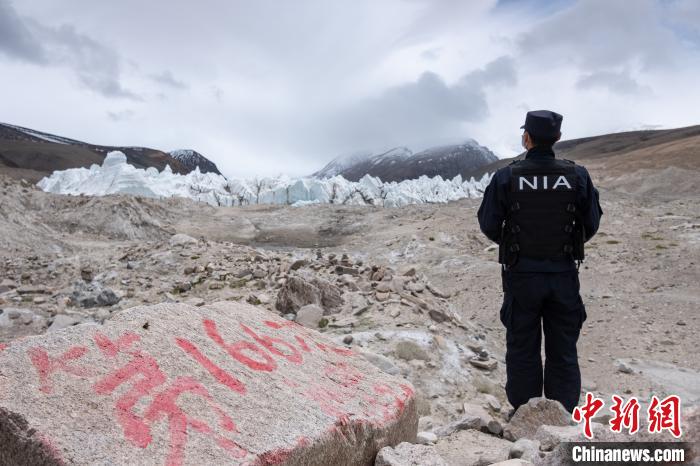 普瑪江塘邊境派出所民警們通過步巡對(duì)邊境一線(崗布冰川)進(jìn)行了全面細(xì)致的巡邏檢查。何蓬磊 攝