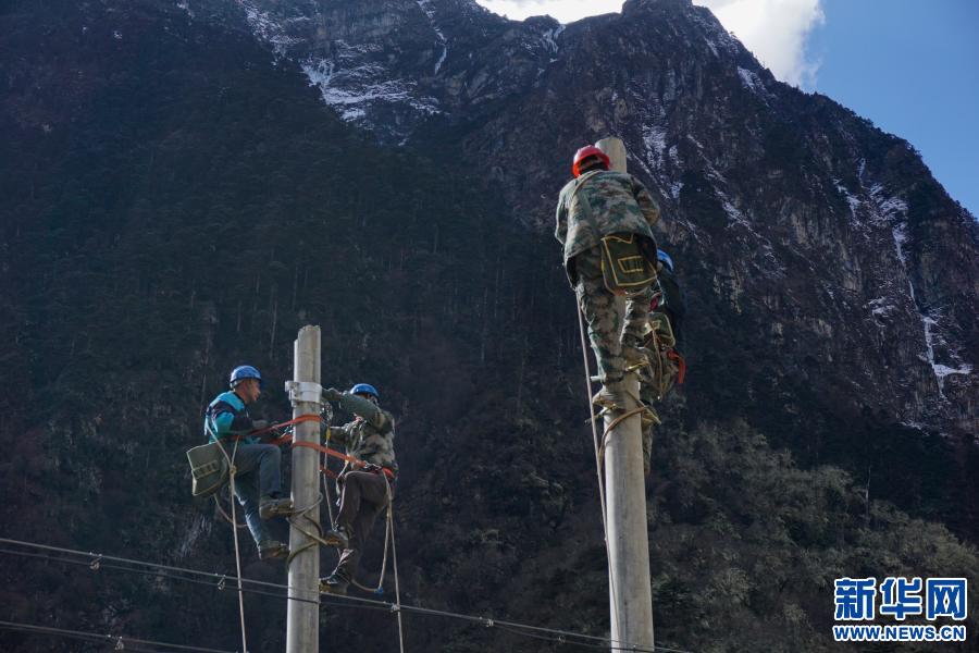 西藏玉麥鄉(xiāng)電力線路全線貫通,圖為工人在玉麥鄉(xiāng)境內施工(2017年12月17日攝)。新華社發(fā)(白峰 攝)