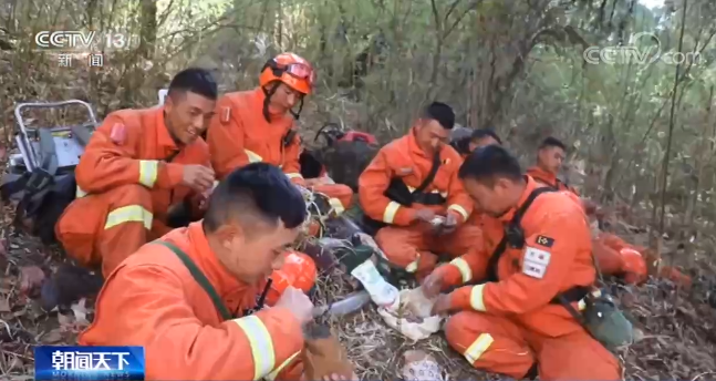 在林子里穿梭6個小時后,隊員們在半山腰的叢林里,開始一天的“正餐”,這也是他們一天中難得的休閑時光。