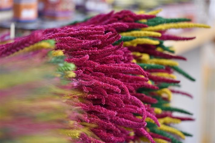 “羅薩梅朵一把5元,都是自家制作的?!?6日,記者在拉薩市八廓商城看到,一處攤位上整齊地擺放著羅薩梅朵,不時有顧客前來詢價挑選。