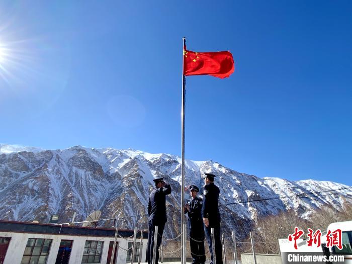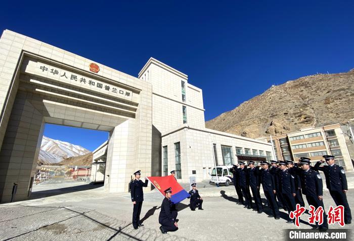 圖為普蘭邊檢站舉行升旗儀式?!∑仗m邊檢站供圖