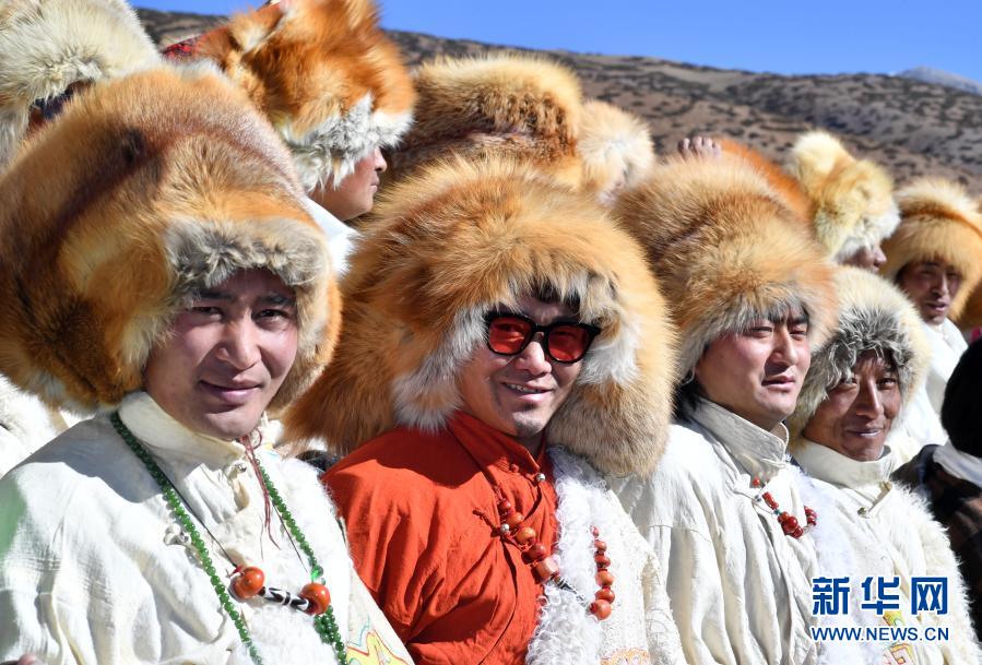 2月12日在藏北當(dāng)雄縣公塘鄉(xiāng)拍攝的盛裝漢子。新華社記者 覺果 攝