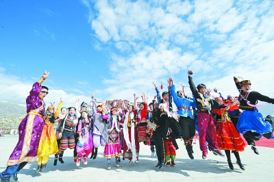 各民族代表歡聚在西藏拉薩布達(dá)拉宮廣場(chǎng)。新華社發(fā)