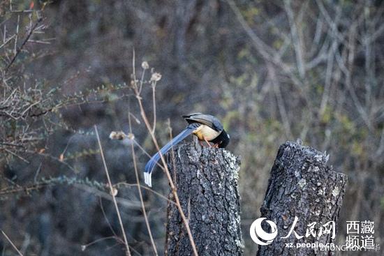 珠峰保護(hù)區(qū)內(nèi)的黃嘴藍(lán)鵲 北京林業(yè)大學(xué)學(xué)生鐘華 攝