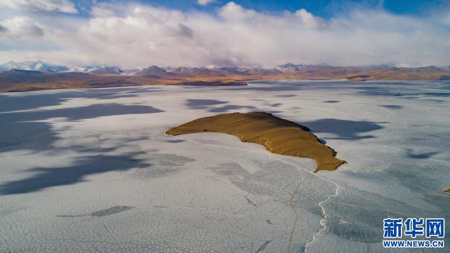 這是3月6日拍攝的普莫雍錯(cuò)湖心島(無(wú)人機(jī)照片)。新華社記者 孫非 攝