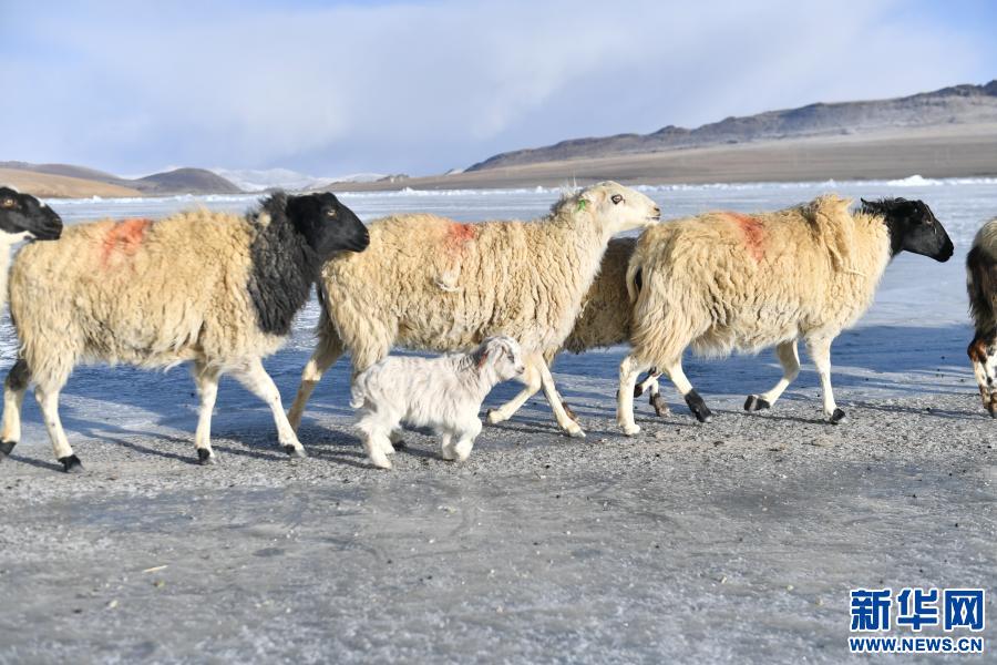 羊群在普莫雍錯(cuò)湖心島上準(zhǔn)備出發(fā)(3月6日攝)。新華社記者 孫瑞博 攝
