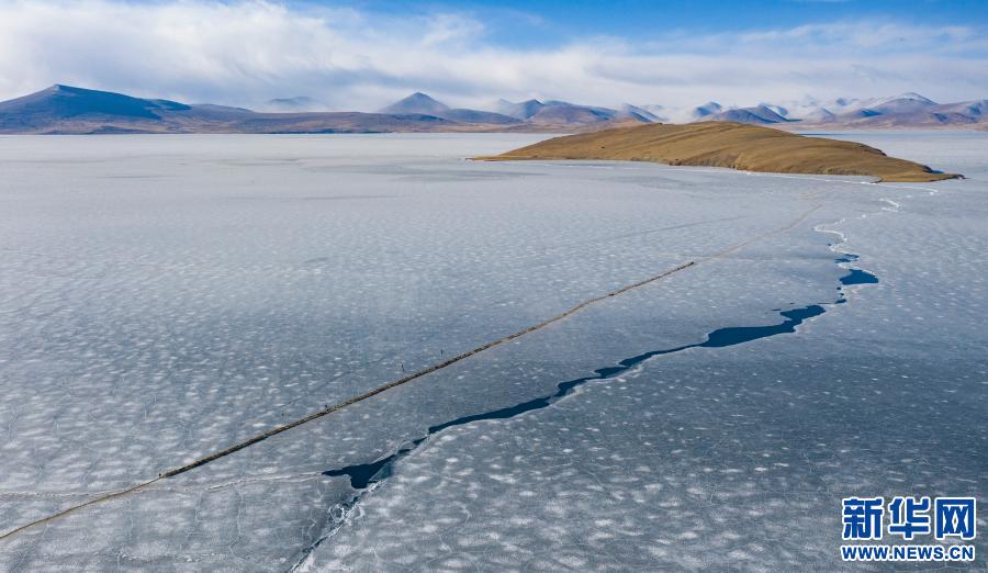每年高原最冷的時(shí)刻,普莫雍錯(cuò)封凍成冰湖。