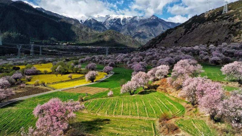 主辦方介紹,生機(jī)盎然的粉嫩桃花,在氣勢磅礴的冰山雪峰下綿延起伏,與雅魯藏布江的壯美交相輝映。